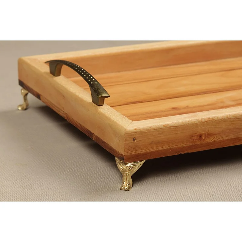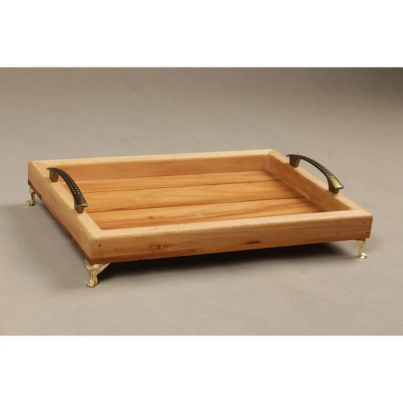 سینی چوبی دسته فلزی و پایه طلایی مدل کلاسیک